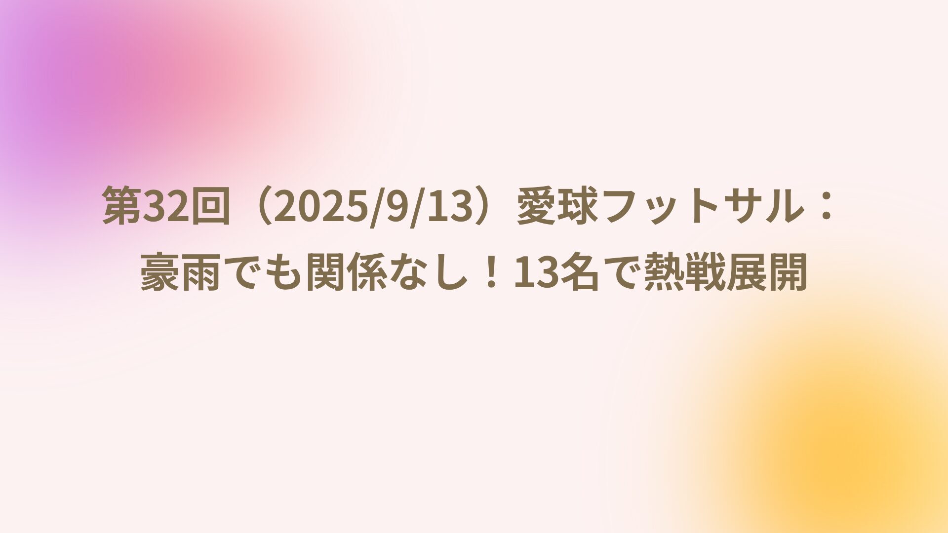 CATEGORY チームヒストリー 第36回(2025/10/18)愛球フットサル:少年たちの声援が力に! 2025.10.20 チームヒストリー 管理者 愛球(あしたま) 第35回(2025/10/11)愛球フットサル:涼しい秋風と熱いプレー! 2025.10.14 チームヒストリー 管理者 愛球(あしたま) 第34回(2025/10/4)愛球フットサル:秋晴れの朝にナイスプレー! 2025.10.06 チームヒストリー 管理者 愛球(あしたま) 第33回(2025/9/27)愛球フットサル:気付けば1周年経過… 2025.09.28 チームヒストリー 管理者 愛球(あしたま) 第32回(2025/9/13)愛球フットサル:豪雨でも関係なし!13名で熱戦展開 2025.09.14 チームヒストリー 管理者 愛球(あしたま) 第31回(2025/9/6)愛球フットサル:14名参加で盛況!安定開催への道のり 2025.09.08 チームヒストリー 管理者 愛球(あしたま) 第30回(2025/8/30)愛球フットサル:3週連続開催達成!無理は禁物で安全第一 2025.08.31 チームヒストリー 管理者 愛球(あしたま) 第29回(2025/8/23)愛球フットサル:連続開催で活動リズム復活! 2025.08.29 チームヒストリー 管理者 愛球(あしたま) 第28回(2025/8/16)愛球フットサル:久しぶりの大人数で活気復活! 2025.08.29 チームヒストリー 管理者 愛球(あしたま) 第27回(2025/7/12)愛球フットサル 2025.07.13 チームヒストリー 管理者 愛球(あしたま) もっと見る